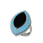 Siyah zirkon ve akuamarin 14 ayar beyaz altın yüzük