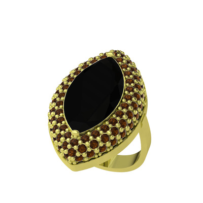 Siyah zirkon ve dumanlı kuvars 925 ayar altın kaplama gümüş yüzük