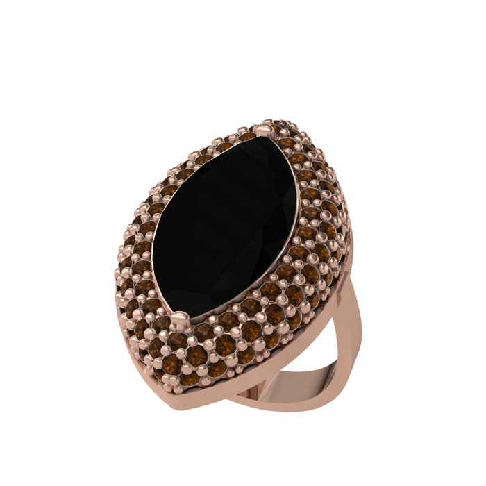 Siyah zirkon ve dumanlı kuvars 925 ayar rose altın kaplama gümüş yüzük