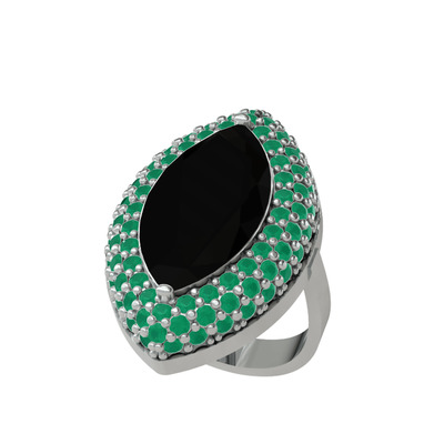 Siyah zirkon ve kök zümrüt 14 ayar beyaz altın yüzük