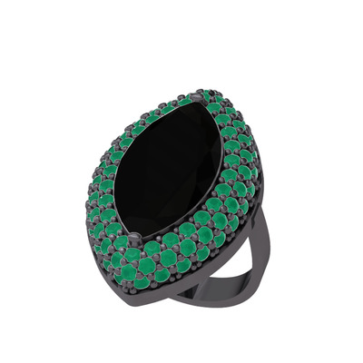 Siyah zirkon ve kök zümrüt 925 ayar siyah rodyum kaplama gümüş yüzük