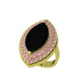 Siyah zirkon ve pembe kuvars 14 ayar altın yüzük