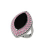 Siyah zirkon ve pembe kuvars 8 ayar beyaz altın yüzük