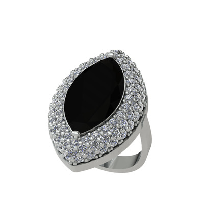 Siyah zirkon ve pırlanta 925 ayar gümüş yüzük (2.952 karat)