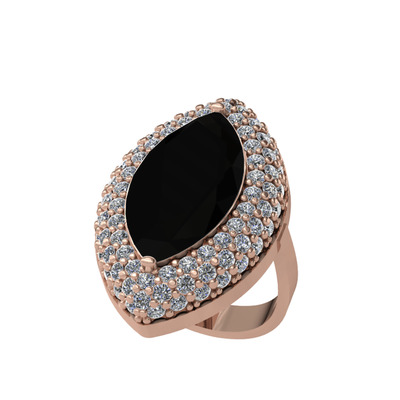 Siyah zirkon ve pırlanta 925 ayar rose altın kaplama gümüş yüzük (2.952 karat)