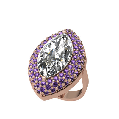 Swarovski ve ametist 925 ayar rose altın kaplama gümüş yüzük