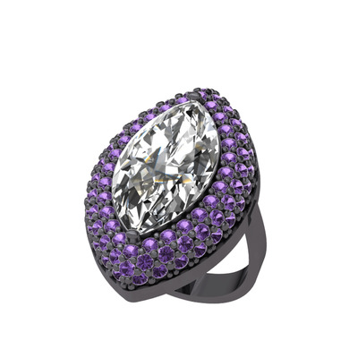 Swarovski ve ametist 925 ayar siyah rodyum kaplama gümüş yüzük