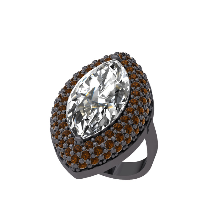 Swarovski ve dumanlı kuvars 925 ayar siyah rodyum kaplama gümüş yüzük