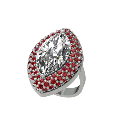 Swarovski ve garnet 14 ayar beyaz altın yüzük