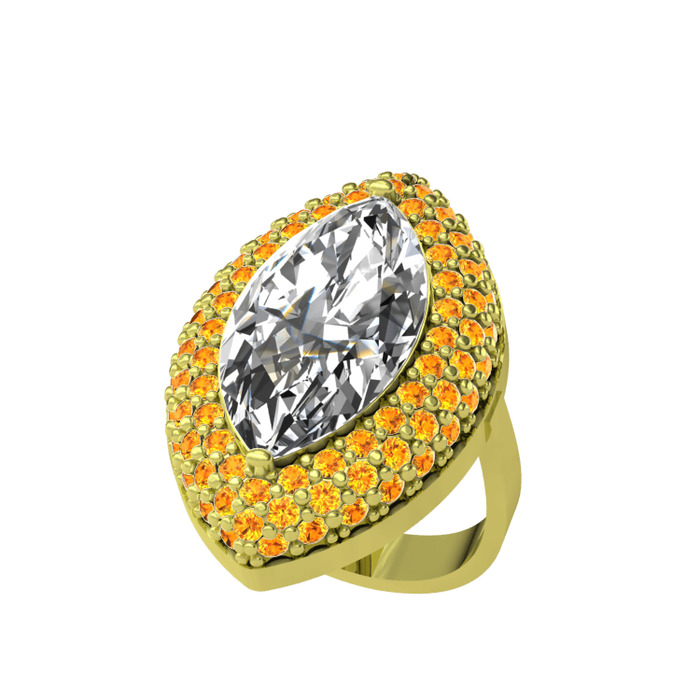Swarovski ve sitrin 925 ayar altın kaplama gümüş yüzük