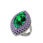 Yeşil kuvars ve ametist 14 ayar beyaz altın yüzük