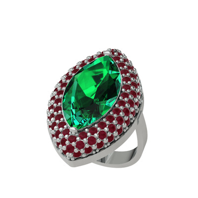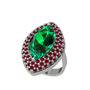 Yeşil kuvars ve kök yakut 14 ayar beyaz altın yüzük