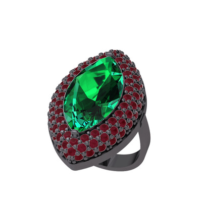 Yeşil kuvars ve kök yakut 925 ayar siyah rodyum kaplama gümüş yüzük