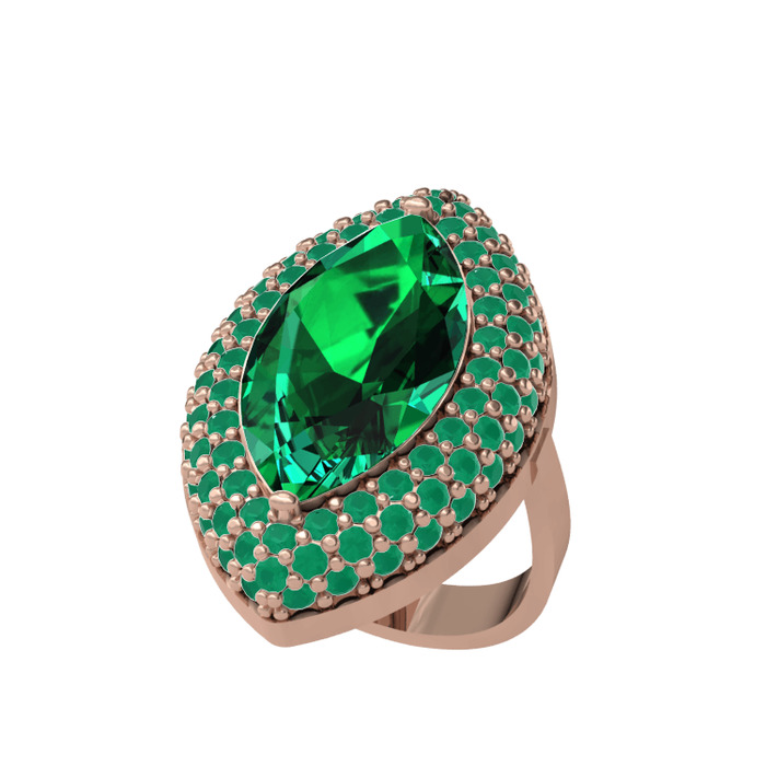 Yeşil kuvars ve kök zümrüt 8 ayar rose altın yüzük