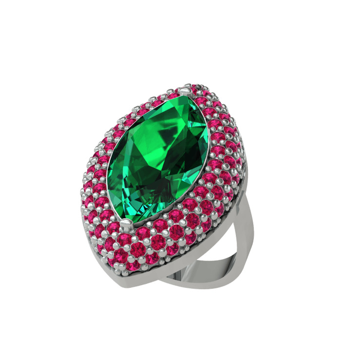 Yeşil kuvars ve rodolit garnet 14 ayar beyaz altın yüzük