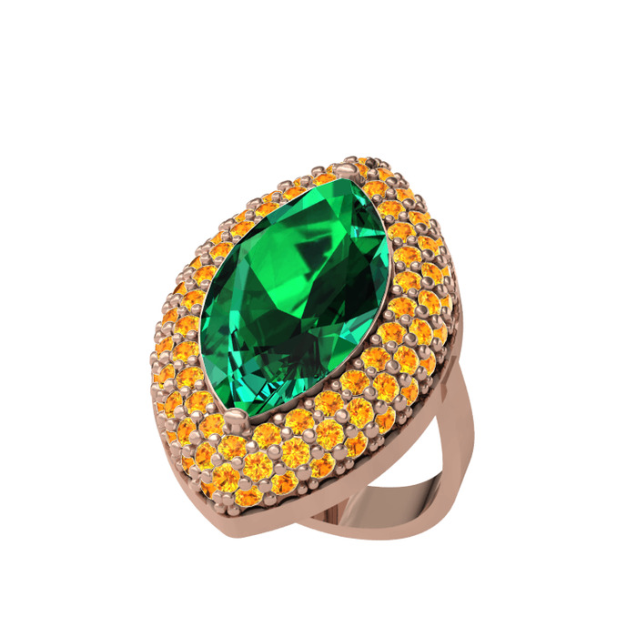 Yeşil kuvars ve sitrin 14 ayar rose altın yüzük