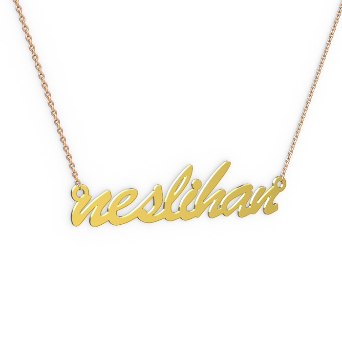 14 ayar altın kolye (8 karakterli el yazısı, 40 cm rose altın rolo zincir)