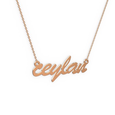 14 ayar rose altın kolye (6 karakterli el yazısı, 40 cm rose altın rolo zincir)