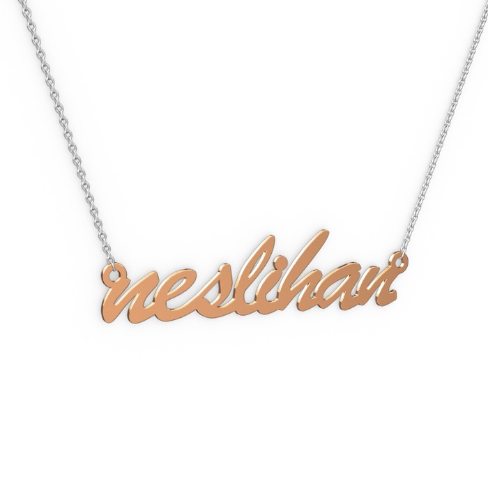 14 ayar rose altın kolye (8 karakterli el yazısı, 40 cm beyaz altın rolo zincir)