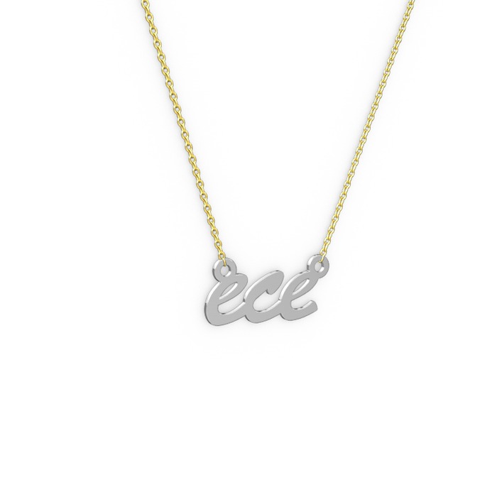 18 ayar beyaz altın kolye (3 karakterli el yazısı, 40 cm altın rolo zincir)