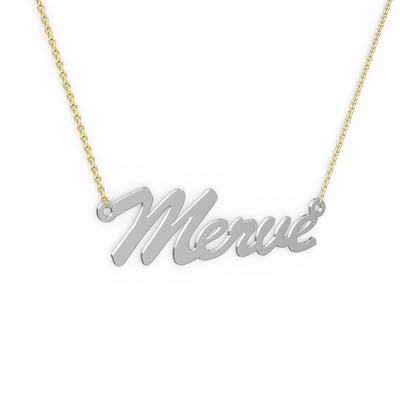 18 ayar beyaz altın kolye (5 karakterli el yazısı, 40 cm altın rolo zincir)