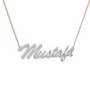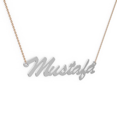 18 ayar beyaz altın kolye (7 karakterli el yazısı, 40 cm rose altın rolo zincir)