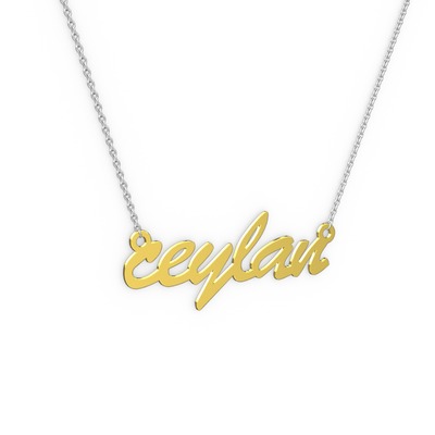 8 ayar altın kolye (6 karakterli el yazısı, 40 cm beyaz altın rolo zincir)