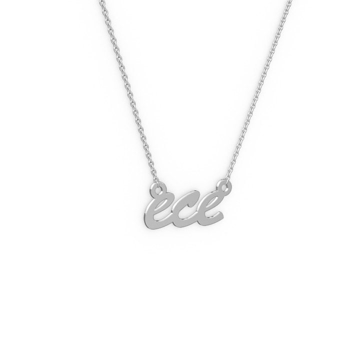 8 ayar beyaz altın kolye (3 karakterli el yazısı, 40 cm beyaz altın rolo zincir)