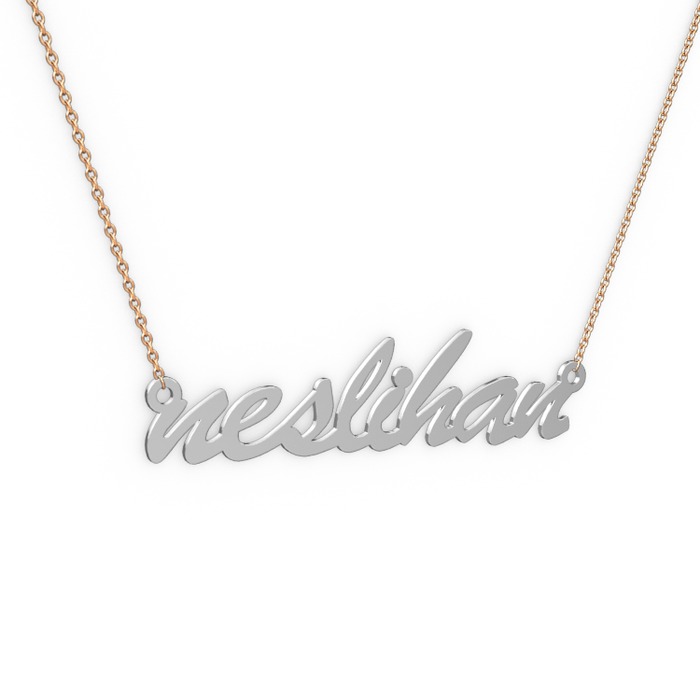 8 ayar beyaz altın kolye (8 karakterli el yazısı, 40 cm gümüş rolo zincir)