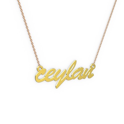925 ayar altın kaplama gümüş kolye (6 karakterli el yazısı, 40 cm rose altın rolo zincir)