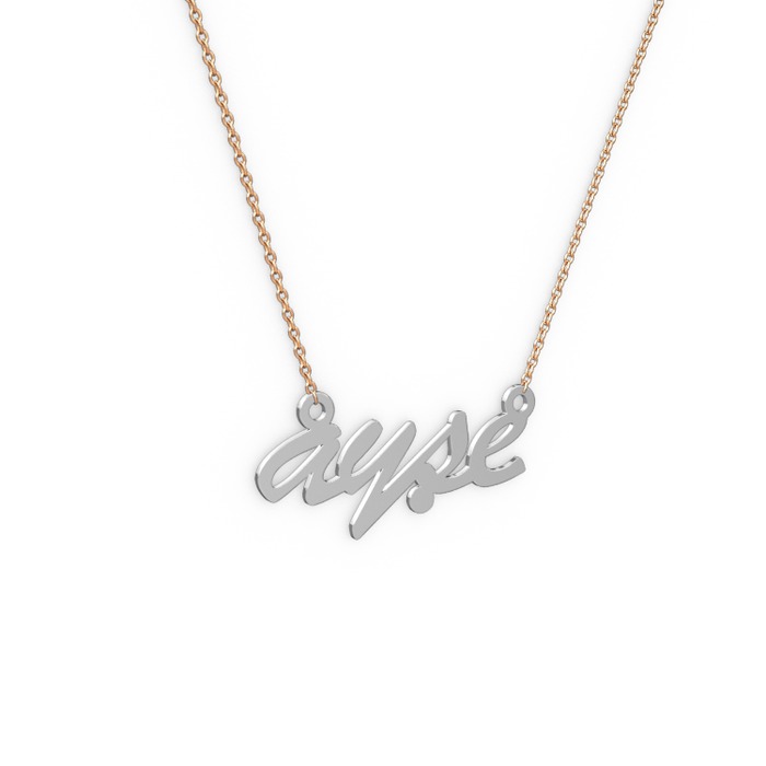 925 ayar gümüş kolye (4 karakterli el yazısı, 40 cm rose altın rolo zincir)