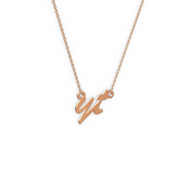 925 ayar rose altın kaplama gümüş kolye (2 karakterli el yazısı, 40 cm rose altın rolo zincir)