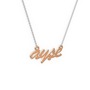 925 ayar rose altın kaplama gümüş kolye (4 karakterli el yazısı, 40 cm beyaz altın rolo zincir)