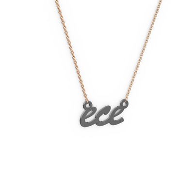 925 ayar siyah rodyum kaplama gümüş kolye (3 karakterli el yazısı, 40 cm rose altın rolo zincir)