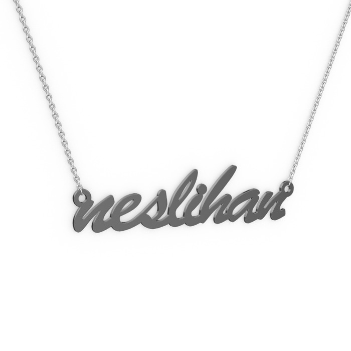 925 ayar siyah rodyum kaplama gümüş kolye (8 karakterli el yazısı, 40 cm gümüş rolo zincir)