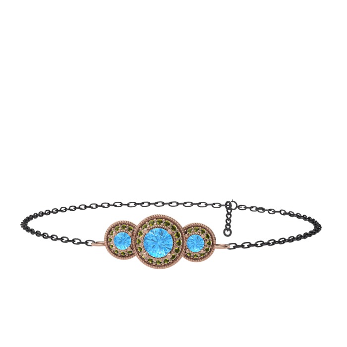 Akuamarin ve peridot 925 ayar rose altın kaplama gümüş bilezik (17 cm gümüş rolo zincir)