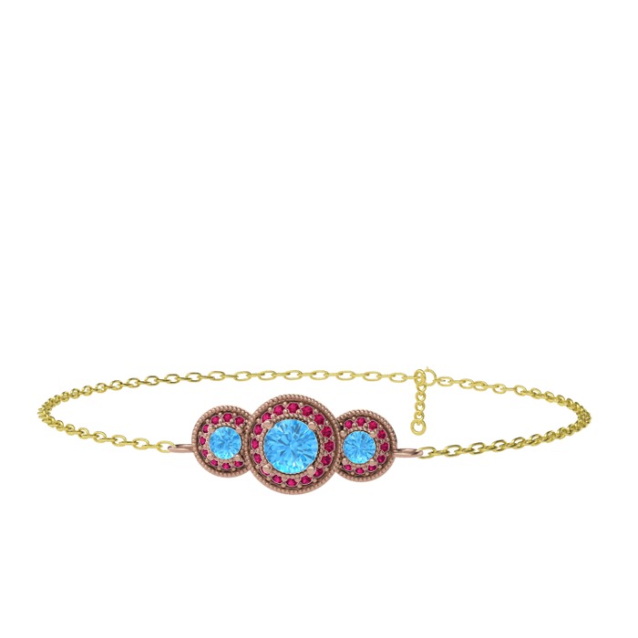 Akuamarin ve rodolit garnet 925 ayar rose altın kaplama gümüş bilezik (17 cm gümüş rolo zincir)