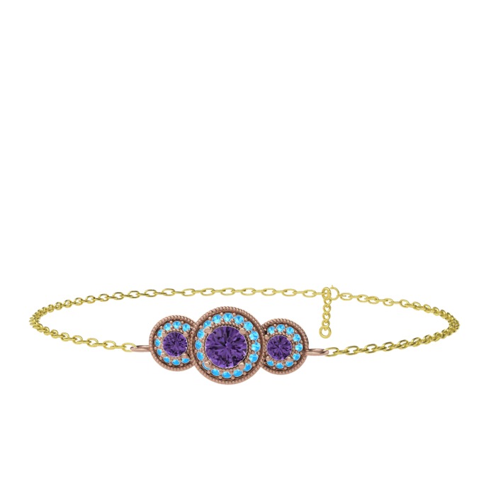 Ametist ve akuamarin 18 ayar rose altın bilezik (17 cm altın rolo zincir)