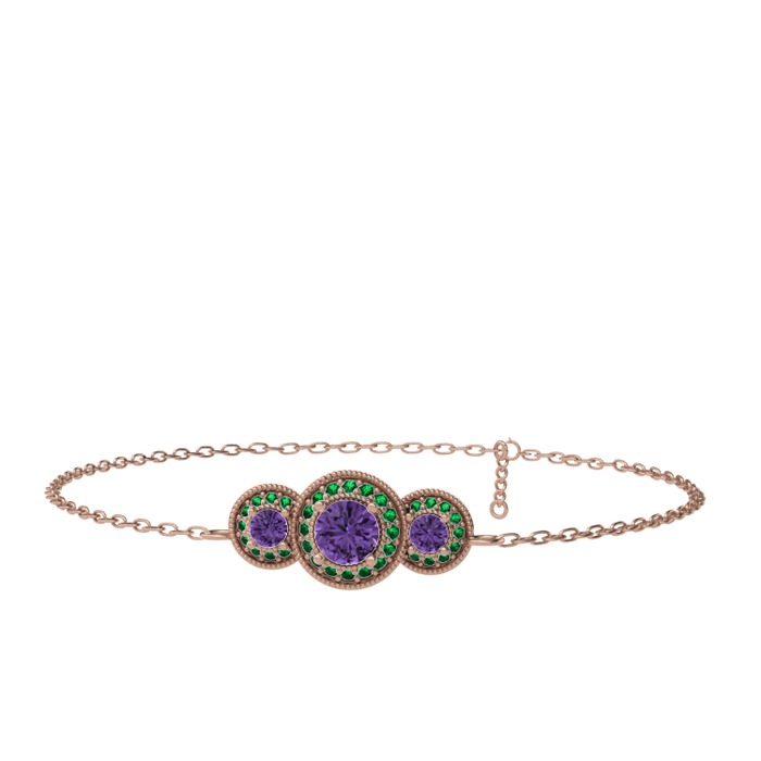 Ametist ve yeşil kuvars 14 ayar rose altın bilezik (17 cm rose altın rolo zincir)