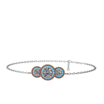 Beyaz zirkon ve akuamarin 925 ayar rose altın kaplama gümüş bilezik (17 cm beyaz altın rolo zincir)