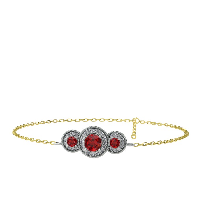 Garnet ve pırlanta 925 ayar gümüş bilezik (0.462 karat, 17 cm altın rolo zincir)