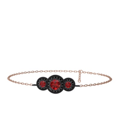 Garnet ve siyah zirkon 925 ayar siyah rodyum kaplama gümüş bilezik (17 cm gümüş rolo zincir)