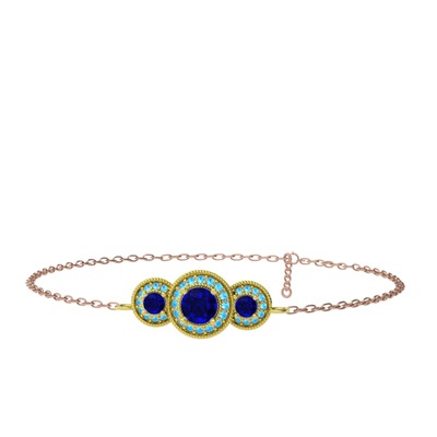 Lab safir ve akuamarin 925 ayar altın kaplama gümüş bilezik (17 cm rose altın rolo zincir)