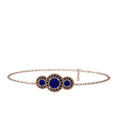 Lab safir ve siyah zirkon 8 ayar rose altın bilezik (17 cm rose altın rolo zincir)
