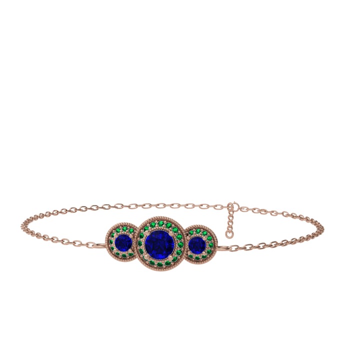 Lab safir ve yeşil kuvars 8 ayar rose altın bilezik (17 cm gümüş rolo zincir)