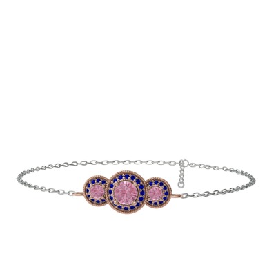 Pembe kuvars ve lab safir 8 ayar rose altın bilezik (17 cm beyaz altın rolo zincir)