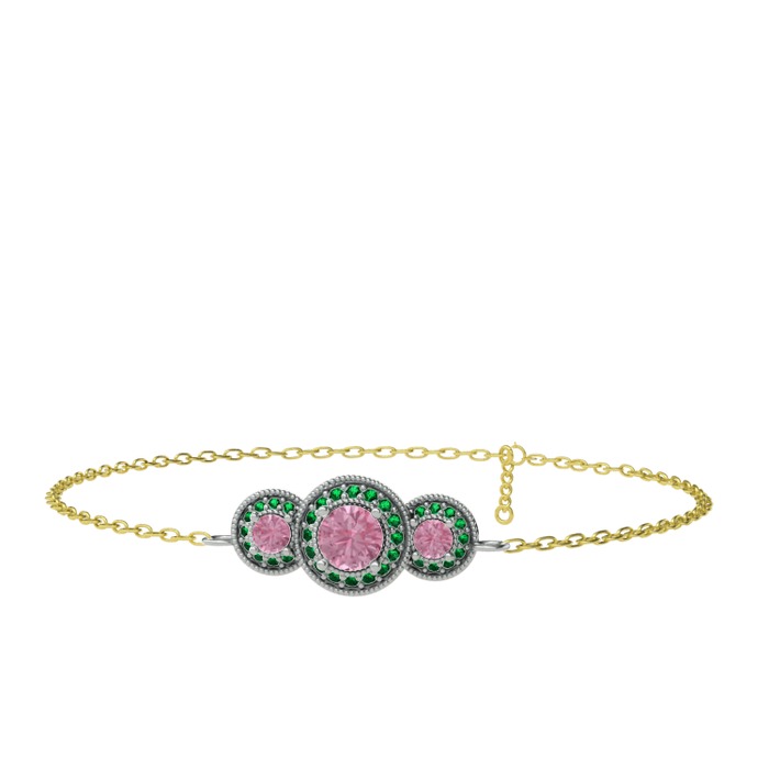 Pembe kuvars ve yeşil kuvars 925 ayar gümüş bilezik (17 cm gümüş rolo zincir)