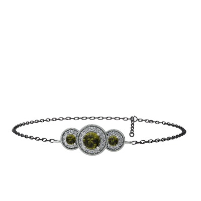 Peridot ve beyaz zirkon 8 ayar beyaz altın bilezik (17 cm gümüş rolo zincir)