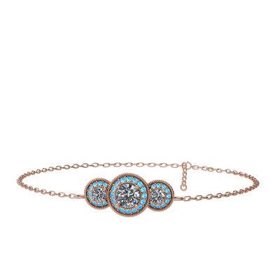 Pırlanta ve akuamarin 14 ayar rose altın bilezik (1.5 karat, 17 cm gümüş rolo zincir)