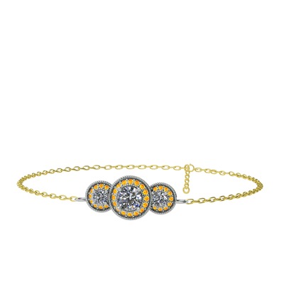 Pırlanta ve sitrin 18 ayar beyaz altın bilezik (1.5 karat, 17 cm gümüş rolo zincir)